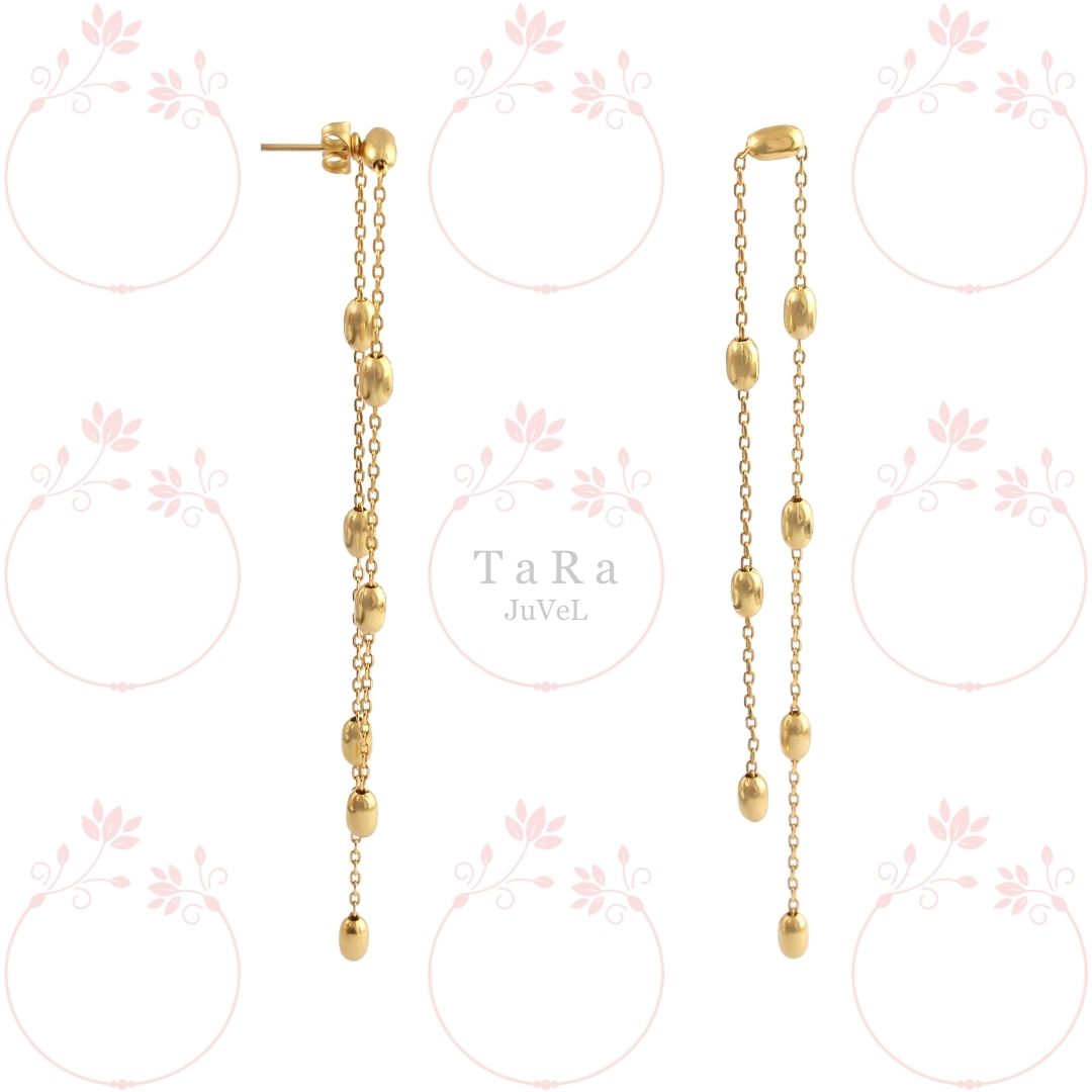Our Golden Ball Danglers are meticulously crafted from high-quality materials, featuring a lustrous golden finish that adds a touch of luxury to the design. The use of premium materials ensures both durability and an irresistible shine, elevating these earrings to a level of understated elegance.